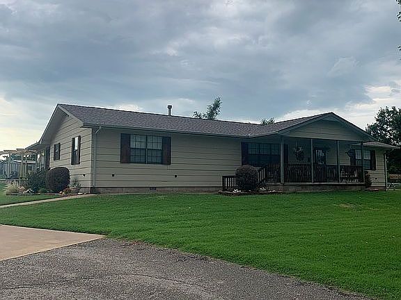 This is a great family home on one acre on the corner of South Broadway and Oklahoma Street in Hinton, Oklahoma. It is 2,004 square feet. It is 3 bedroom- 2 1/2 bath with a bonus room. The kitchen has granite countertops. The house has updated flooring throughout and is well-taken care of. This home has a fenced in backyard, and an approx 25X50 barn including an attached carport. It also has a clean and dry storm cellar that can be accessed from inside the home.
