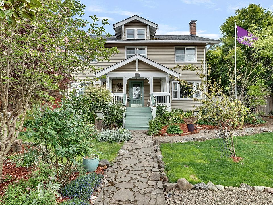 Stunning foursquare in a beautiful setting, lovingly restored to its original glory w/ modern conveniences! A stone pathway leads you to the front porch w/ nostalgic bench swing. Enter traditional foyer & be charmed by pristine wood floors + magnificent baseboards. Dining room w/ space at the table for everyone leads to a gourmet kitchen w/ granite countertops, glass-front cabinets, a double oven, hooded gas stove, ample counter space & large pantry. On opposite side, French doors open to formal living room w/ wood-burning fireplace also plumbed for gas. More French doors connect to a bedroom or den w/ built-in shelves. Main level features full bathroom w/ unique pedestal sink & custom stone shower & charming powder room. Upstairs, 5 (!) bedrooms await, all w/ hardwood floors, updated vinyl windows & great views in every direction. Multiple rooms are ideal candidates for a primary bedroom. Large bathroom w/ classic clawfoot tub. Opportunity to convert a bedroom to a bathroom or use as a den. Skylight-lit attic for additional storage or bonus space. Basement w/ separate backyard entrance, perfect for dual-living w/ three distinct bonus areas + laundry & utility room. Outside, a well-established garden w/ raised beds & drip lines is ready for its next cultivator of berries, pears, hydrangeas & grapes, just to name a few. Pick apples from a tree, hearkening back when the whole area was an orchard. Built in 1915 by Gertrude & William Arthur Hall, Clatskanie’s “leading citizen” who served as a teacher, pharmacist & mayor. Sitting areas throughout garden are set up for you to socialize or relax and watch eagles fly by & mule deer cross the street, not to mention festive holiday parades that route through Nehalem St. Well-lit 8’ x 6’ shed could be a great studio or storage in addition to 20’ x 14’ garage. Minutes to farmers’ market, live music, restaurants, coffee shops, community pool, library, grocery, boat launch, & Beaver Falls, this historic house is truly impressive!