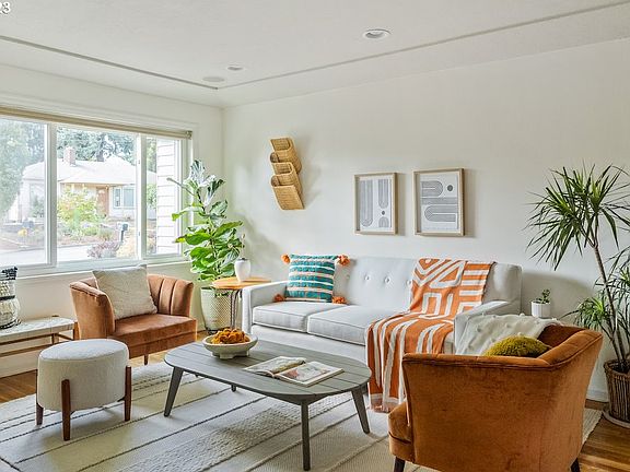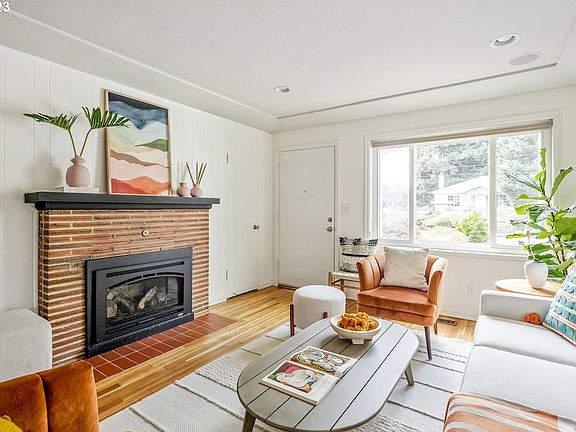 Extensively updated and picture perfect, this adorable ranch offers easy one-level living on a corner lot in a fantastic Mill Park location. Lovely light illuminates the open living room area, with original hardwood floors and a gas fireplace as centerpiece. The dining area connects with a spacious kitchen, complete with stainless steel appliances, quartz countertops, and sliding doors leading out to the fabulous partially covered deck. There's three good-sized bedrooms - one that connects to a little workshop/studio/office/storage room - an updated contemporary bathroom, and bonus, there's a convenient dedicated laundry room, as well! Step outside to what is truly a backyard sanctuary: private, fenced, with lush landscaping, tool shed, and a luxurious built-in hot tub overseeing the serenity. Perfect for socializing, late night dinner parties, or relaxing solo on a chilly fall evening. Plus there's a massive, mature Norway Maple Tree that provides a beautiful canopy to set the scene. Positioned between two parks - Ventura and Floyd Light City Park - close to shops, schools, Burnside and Stark Streets, transit, and more, this meticulously loved home is an absolute gem in a wonderful neighborhood. 3rd bedroom may be non-conforming. [Home Energy Score = 7. HES Report at https://rpt.greenbuildingregistry.com/hes/OR10221455]
