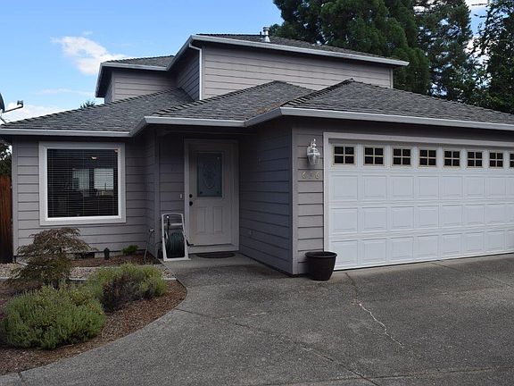 Super cute and well cared for free standing home tucked away on a nice cul-de-sac location. The main floor has the master suite, along with a spacious kitchen, living room and dining room. Kitchen has an eating bar and newer range/oven. The backyard is paved for easy relaxing and summer BBQ's. There is an additional 2 bedrooms upstairs with a full bath. The landing upstairs is roomy enough for a computer desk. Inside laundry and 2 car attached garage. Lot of house for the money!! Please call LA prior to showings.