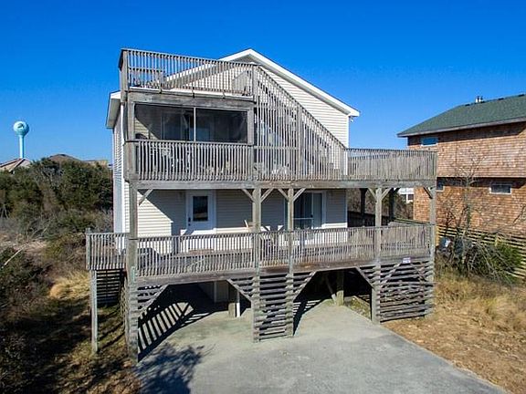 Light-filled Corolla oceanside vacation home with GREAT OCEAN VIEWS! Excellent location in low-density Ocean Sands Section E, with fewer houses thus fewer people on the beach! Added safety and convenience of Ocean Sands' only STOPLIGHT across Rt. 12 leads straight to groceries, dining and shopping including famous Duck Donuts! Incredible ocean view overlooking community open space from the kitchen, great room, top deck and crow's nest atop the screened porch! NEW RENTAL MANAGEMENT FOR 2018! Booking up now with Sun as #62-E, still named "Summer Breeze." Fully-furnished, turn-key rental with popular family-friendly 4 bed/3 full bath floor plan. Everything needed for a comfy no-frills beach vacation! Freshly-trimmed yard/grounds winter 2018, and NEW in recent years: Sofas, carpet, vinyl in baths, interior paint and kitchen appliances! Screened porch, crow's nest and plenty of decks to chill out and enjoy the salt air! Put your personal touches on this perfect "starter" Corolla vacation rental! Last 3 photos show Ocean Sands Section E boardwalk and beach access.