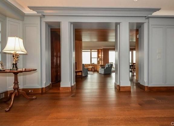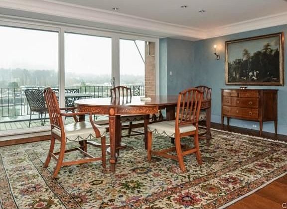 Direct waterfront condominium with mesmerizing water views! Exquisite and unique, was 3 separate units! Owner combined, renovated and now a spacious 5 bedroom, 4 full bath, 3 balcony end unit. Open Cooks Kitchen, formal Dining Room w views and Balcony, dining area off Kitchen, w/Gathering Rm, lg. Family Rm. Spacious Master Bedroom Suite, Dressing area, walk in closets, Balcony, Spa type Bath. 4 additional Bedrooms, one separate w full Bath can be au pair/in-law quarters. Poss. office, large laundry rm. and half bath. Covered garage for your convenience, boat slip available.