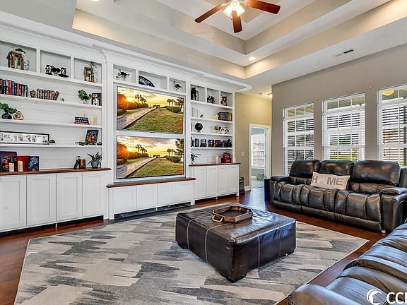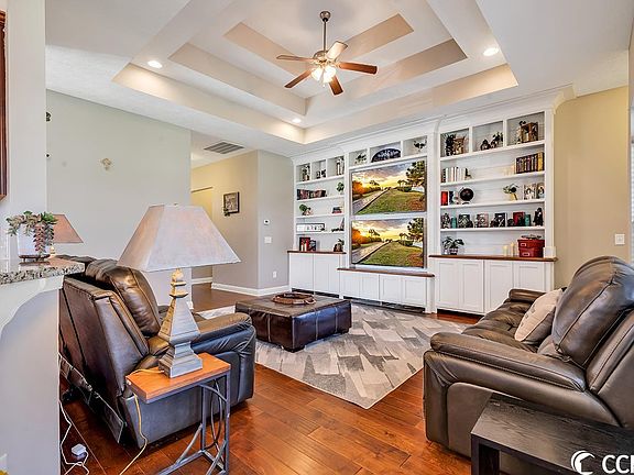 As you enter you will be impressed with the living rooms floor to ceiling custom built-in media wall with custom cabinetry and bookcases. This large 18 x 18 room with 10 ft. tray ceilings is perfect for hosting gatherings or quiet evenings at home. The spacious kitchen boasts granite counters, tile backsplash, a breakfast bar, pantry and adjoing breakfast room. A formal dining overlooks the .35 acre yard. The luxurious owner's suite is a true retreat with a huge bedroom and the bath includes dual sinks, a walk in shower, seperate garden tub, a private water closet and 2 walk in closets. 3 additional bedrooms and a full bath are located on the other side of this ranch. It's move in ready as it was recently painted. A screen porch, cement patio and firepit are out back on this corner lot with side entry double garage. There's plenty of room to add a pool if you desire a private pool, but the community pool is only a block away. Forestbrook Preserve is a sought after community. This home was built in 2015.