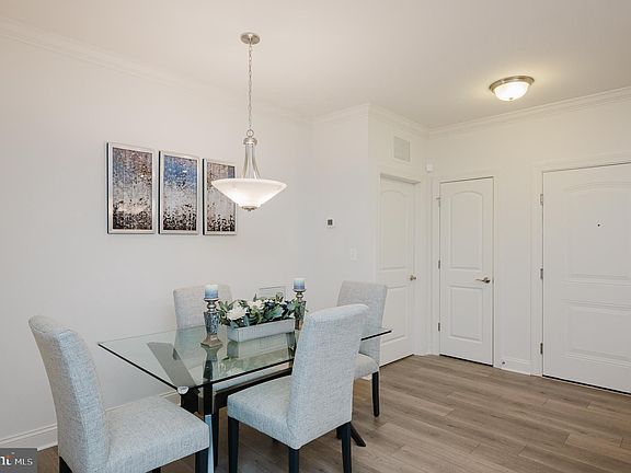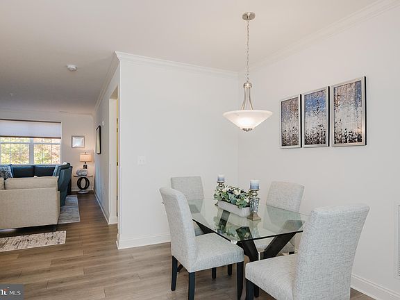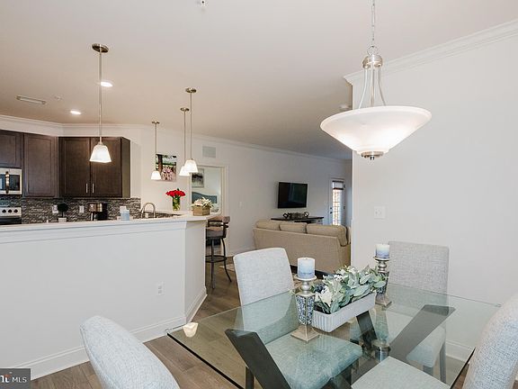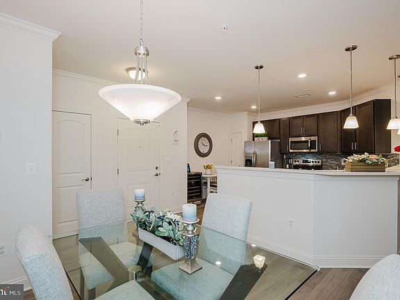 Welcome to your peaceful oasis at The Overlook at Gateway, a sought-after 55+ community in the heart of Bel Air. This traditional second-floor unit offers a perfect blend of comfort and style, featuring two spacious bedrooms and two well-appointed baths. Step inside to an open-concept living space adorned with luxury vinyl plank flooring and elegant crown molding throughout the dining and living areas. The kitchen is a chef's delight, boasting quartz countertops, stainless steel appliances, and a stylish backsplash that complements the recessed lighting. Enjoy morning coffee at the breakfast bar illuminated by pendant lights, or make use of the ample table space and pantry for your culinary adventures. The primary bedroom is a serene retreat with plush carpeting, crown molding, and a ceiling fan to keep you comfortable year-round. Sliding glass doors lead to your private balcony overlooking lush woods —a perfect spot to unwind and soak in nature. A walk-in closet and attached bath complete the primary suite, featuring tile floors, a dual vanity with quartz countertops, a stall shower, and a convenient linen closet. The second bedroom also offers cozy carpeting and crown molding, with easy access to a full bath equipped with a tub-shower combo and a quartz vanity. An in-unit laundry area adds to the convenience of this charming home. Parking is a breeze with your own assigned garage space (#43) and plenty of open parking for guests. The community enhances your lifestyle with beautifully maintained common grounds, a welcoming community center, a fitness facility to keep you active, and a game room for social gatherings. With direct access to the Ma and Pa Trail, outdoor enthusiasts will relish the opportunities for walking, biking, and enjoying the natural surroundings. Experience the perfect blend of tranquility and community living—schedule your visit today and discover all that this exceptional home has to offer!