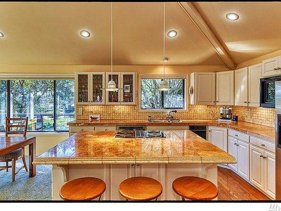 Live a vacation everyday as you enjoy your custom built home featuring: an open floor plan w/large windows, vaulted ceilings & skylights allowing the sun rays to penetrate the rooms w/an abundance of natural light; hardwood floors; gourmet kitchen w/marble counter tops; breakfast bar, office, dining area w/doors leading to the deck; 2-fireplaces; office/den; main level living. Amenities include 2- swimming pools, tennis courts, club house, golf, 2-private beaches, boat ramp, marina, BBQ areas.