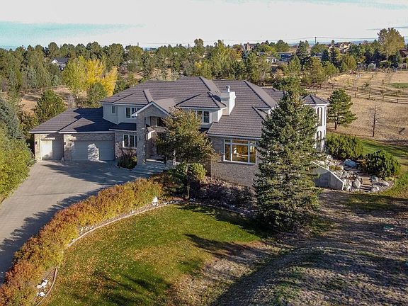 Incredible Country in the City Feel within the Cherry Creek School District with 2.23 Acres of Rolling Hills and Mountain Views! Less than 1.5 Miles to top Rated Grandview High School, Sprouts Farmers Market and the Beautiful Saddle Rock Golf Course! A Fabulous layout with a Main Floor bedroom, Office with Gas Fireplace and an Entryway with Soaring Vaulted Ceilings. The Open Kitchen overlooks the West Facing Windows and Sun-Filled Family Room, the Deck off the Kitchen Nook and the Professionally Designed Covered Back Patio with Custom Beams, Gas Fireplace, and Grilling Station! Enjoy the Private and Spacious Master Bedroom with your own Covered Deck overlooking the Vast and Treed Backyard. The Additional Three Bedrooms upstairs include their own Walk-In Closets and Updated Ensuite Bathrooms! Wind Your Way down to the Walk-Out Basement and Fully Equipped and High Tech Theater Room With Popcorn Maker, Beverage Refrigerator, Stadium Seating for Eleven People! The Chicken Coop, Raised Garden Beds, Basketball Court, Zoning for up to Three Horses and Community Bridle Paths Add to the Country Feel of this Expansive Home!
