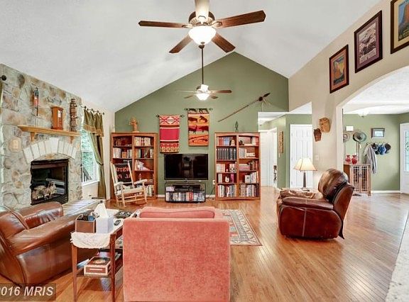 GORGEOUS Private Lot that backs to trees! Inviting Front Porch! Covered Deck in rear w/lighting! 2 Car Side-Loading 2 Lvl Garage! Gleaming HW Flrs! Grand Cathedral Ceilings! Propane Stone FP in Living Rm! Formal Dining Rm! Kitchen features granite,SS Apps, convection oven, & Door in Door Refrigerator! Master BR w/large walk-in closet & spa-like BA w/jetted tub! Unfinished Walk-out basement!