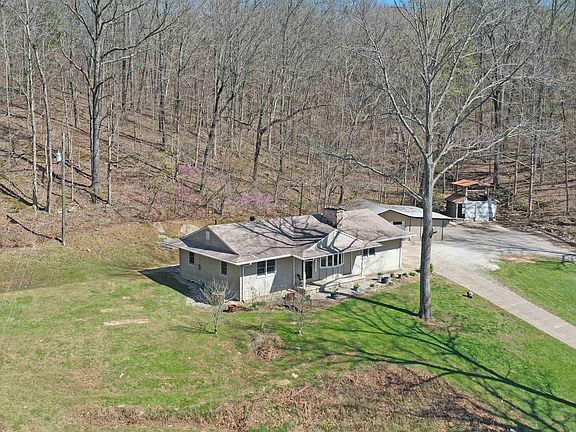 Country living at its best!! Welcome home to this inviting 3 bedroom, 2 bath vinyl sided home situated on a private hill, surrounded by 15 Acres m/l!! Enter the large living room offering a cozy brick gas log fireplace. Abundance of natural light over looking the property. Kitchen features an abundance of cabinets, with a large pantry, stainless steel appliances, dining room with lots of natural lighting. The spacious primary bedroom offers an ensuite and a large walk in closet. Full unfinished basement with endless possibilities! Excellent storage as well. Enjoy your days and evenings relaxing, and or entertaining on the large covered back deck area! This wonderful property offers so many amenities to country living! Great hiking trails, four wheeler/ side by side trails. This lovely home is surrounded by woods, and beautiful creeks, and waterfalls. A private orchard of fruit trees that includes multiple varieties of each: apple, cherry, pear, nectarine, plum, and apricot. The deer hunter will appreciate the 3 Acre foot plot. Several out buildings to the property include a detached one vehicle garage with a nice lean to, another detached storage, hang out area, a large barn with loft and storage area to the bottom of the property. Immediate possession to this beautiful property that awaits its new owner!! A must to view!!