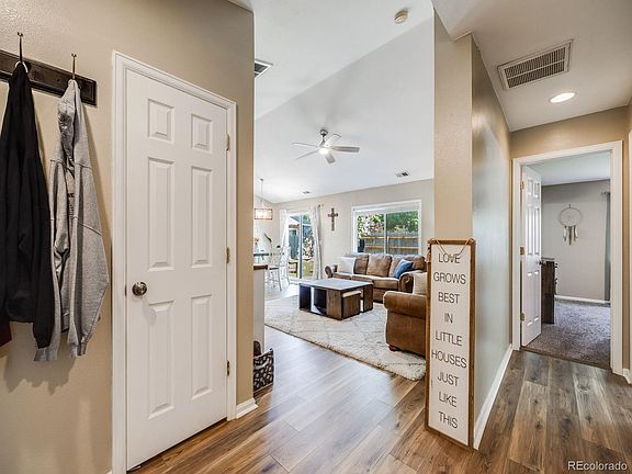 This 3 bedroom, 2 bathroom home is exactly what you have been waiting for. Walk through the covered front patio and step inside the open and inviting living area with warm wood tones and bright natural light streaming through the large windows. The vaulted ceilings add volume to the connected kitchen with modern stainless appliances and nearby dining space with easy access to the back yard full of mature trees and a patio for your next BBQ. The bedrooms are perfectly portioned with a recently updated owner’s retreat. Low taxes and no metro district make this an easy decision, and the $5,000 credit towards your rate buydown seals the deal! Located across from one of Firestone’s largest parks with tennis, basketball and pickle ball courts, a t-ball field, two playgrounds, and several acres of open space. New floors and updated cabinets add to the peace of mind that every one of your boxes can be checked, and this should be your home!