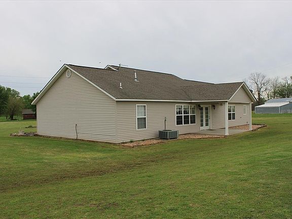 Country Living close to town with this immaculate home that sits on 3.2 acres. Spacious open floor plan and tons of room outside. This 3 bedroom has 2 full baths and features over 1700 sqft, custom kitchen cabinets,handicap accessible doorways with an attached 2 car garage. Great detached workshop with Heating and Air! Split floor plan, security system, pellet stove, lots of windows and light, chicken coop and garden area, fenced backyard.
