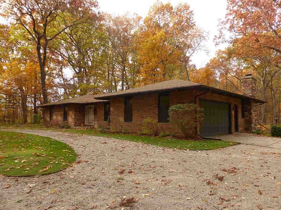 The Buck stops here! Beautiful 1 owner all brick ranch with a walkout lower level on 7.14 wooded and rolling acres. Just north of Potato Creek State Park. 5 bedrooms, 3 full baths. Approx 3,184 finished sqft. Large first floor living room, formal dining room. New eat in kitchen (2007) with amazing views of the woods. Custom hickory cabinets and quartz countertops along with an island. Tiled backsplash. Stainless steel appliances. Deck and 3 season room. 6 panel doors. Open stairway to lower level family room & gas log fireplace.(could convert back to wood burning and the stone came from this property) Huge laundry room w/kitchenette. Park like setting yard with sprinkler system in front and back. 200 amp electric. Circle drive. 2 car attached garage and oversized 1 car detached garage. Home has an alarm and is wired for generator hookup. New central air in 2013. New natural gas forced air furnace in 2008. Huge patio. 4"well, New roof in 2009. If you like nature or like to hunt here it is. Woods has over 1/2 mile of trails. The sellers have well cared for this home and it shows! Call today!