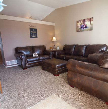 BEAUTIFUL Stetson Hills 3 bed/4 bath home! This home includes: an upgraded kitchen with dark cabinets & stainless steel appliances, Pikes Peak views from the front side of the house, composite decking on front porch, HUGE stamped concrete patio in the back yard that comes with a hot tub, neutral paint & carpet throughout, and a finished basement with potential for a 4th bedroom. This home also has an over-sized driveway for additional parking. No maintenance artificial turf & mulch in back yard, laminate wood floors in kitchen, tile bathroom in basement, updated light fixtures, and much much more!!! Come see this one TODAY!!