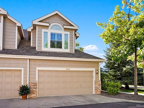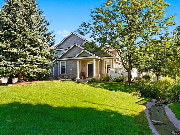 Beautiful Duplex located in the highly desirable Wyndham Park Community of Arvada, with main floor bedroom! Maintenance free living at its finest! This beautiful home sits at the end of the street, a rare opportunity of not facing another home in this community! Peaceful and serene, a gorgeous view of established trees, a stream running by, lush gardens and landscaping surround this beautiful home. Stepping into the front door you will find soaring ceilings, in the bright and airy living room, to include a gas log fireplace and tasteful mantle and surround. Here you will find the sliding glass patio door that is inviting to the private patio, with electronic awning, and the sounds of nature... as the small stream runs by. Lush gardens and professional landscape are all taken care of by the HOA. A main floor bedroom, with full bath ensuite, is a rare find! The kitchen, with ample cabinet storage, includes a gas cooktop with stove, center island, all of the appliances included, and beautiful wood floors. The kitchen connects to the dining room, to include vaulted ceilings and wood floors. The main floor laundry includes storage cabinets and sink with vanity. Upstairs you will find french doors leading to the office, with vaulted ceilings. The office could also be a non-conforming bedroom, as just a closet door would need to be added to the already built out space. Just down the hall from there, an oversized primary suite with vaulted ceilings, huge walk-in closet, and 5 piece bathroom ensuite. The unfinished basement holds many options for extra storage! 2 car attached garage, lower property taxes than many surrounding communities, maintenance free! Close to many amenities, shopping, and restaurants.
