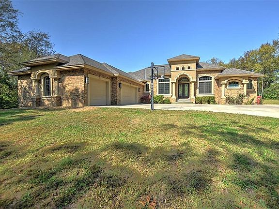 Custom Brick ranch on 1.63 ACRES tucked among the trees!! Walk in the front door and you'll fall in love with the large open floor plan with 12' ceilings and plenty of room to have a large family or friendly get-togethers! The family room has a wall of sliding windows that open up the back of the house to a 26 x 17 COVERED PATIO AREA with GAS FIREPLACE. There's also another LARGE PATIO with a marshmallow roasting fire pit. Off the family room is a gourmet kitchen with GRANITE counter tops, maple cabinetry, premium appliances, and a CENTER ISLAND with EATING BAR. The bedroom floor plan is split with 3 bedrooms on one side of the house and the master on the other with a LUXURIOUS master bathroom with double sinks, a double entrance shower and SPA TUB. There's a handsome den with built-in maple cabinetry. In the lower level there's an additional 2500 finished square footage that includes a super sized rec/family area, a bedroom and another full bath!