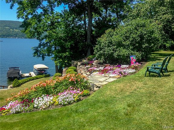 Beautiful lakefront living with historical character and architectural interest located on Canandaigua Lake. The original structure was built 153+ years ago by Abraham Lincoln’s paymaster, Lt. Col. Foster Hixon’s father, Amos Hixon, and lovingly rebuilt and restored over the past 3- plus decades by the current owners. Situated on 1.3 acres, the property features 156 feet of private lakeshore and incredible sunsets. Outdoor spaces include flower gardens, wraparound porch, paver patio with hot tub, stone retaining walls and stairs to private dock. This home exudes comfort and charm, with 3 bedrooms, 3 baths, and 3380 sq ft of interior space featuring design details including: lake views from family room, formal dining room, kitchen, primary suite and guest bedroom; generously-sized rooms with 10’ ceilings; chestnut millwork; spacious primary suite with double closets and en suite bath with soaking tub and step-in shower. Updated kitchen features granite countertops, custom cabinetry, center island, chef’s appliances; mudroom features custom cabinetry and fossilized limestone counters. This property offers the perfect setting for creating beautiful memories for decades to come.