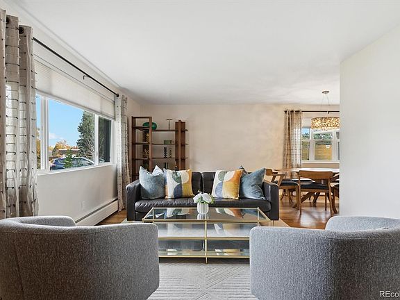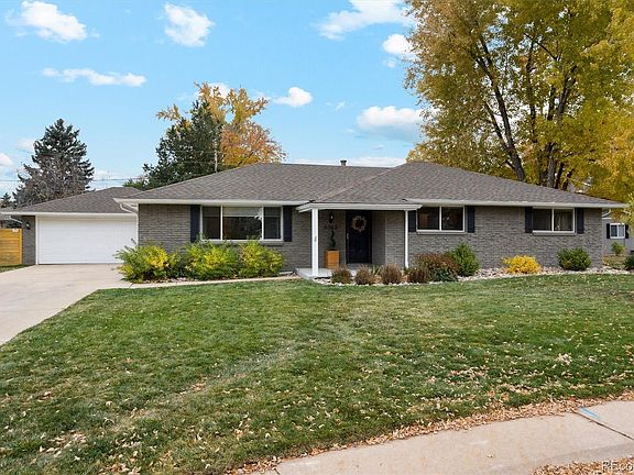 BEAUTIFUL MID-CENTURY MODERN RANCH HOME IN LITTLETON'S COLUMBINE KNOLLS! Located on a quiet cul-de-sac, this ample 1/3 acre property is attractively updated with comfortable main floor living. You'll love the bright, open floor plan with picture windows letting in plentiful light, original hardwoods, modern decor, great light fixtures. Step into the inviting living room where guests can mingle comfortably. Adjacent is the formal dining room fitted with a built-in pantry/bar; cocktails anyone? The separate family room features a cozy painted brick fireplace, great for relaxing book in hand. The updated kitchen boasts slab granite counters & breakfast bar, marble backsplash, white cabinets, Stainless appliances, pendant lights, soft close drawers. Best of all, you can gaze out the window enjoying serene views of the backyard. There are 3 bedrooms on the main including a spacious Primary suite with renovated 3/4 bath--dual solid surface vanities, tile & stone finishes, large walk-in closet. You also have a full renovated full bath on the main, mud/laundry room with access to the covered patio & garage. The finished basement offers more living space with a rec room, bedroom (non-conforming), 3/4 bath & plenty of storage. But that's not all! Enjoy an oversized backyard, a peaceful haven to enjoy year-round with mature landscaping, outdoor spaces to relax & invite the company of friends. Dine al fresco on the covered patio with outdoor lighting, sit by the fire pit on cold winter evenings. Solar panels installed 2021, saving $$ on electrical costs. The HOA is voluntary and offers many fun neighborhood events such as the annual Easter egg hunt, July 4th parade, pool party & Harvest fest; tennis courts & two pools are available. You are ideally located close to shopping, a short walk to nearby parks, the elementary & middle schools; easy access to C-470 & Santa Fe, Chatfield State Park, Aspen Grove, downtown Littleton & the Light Rail. Welcome to your new home & community!