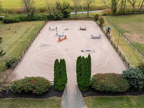 This property is being offered for sale at auction on WEDNESDAY, NOVEMBER 5, 2025 @ 4 PM. List price is the suggested opening bid only and is not indicative of the final sale price. Open House: Saturday, October 18 & 25 and November 1 (1-3 PM). Terms: 10% down day of sale; settlement within 45 days of sale. Terms By: Bleugrass Farms LLC. House: Circa 1732, brick Victorian w/approx. 2,800 SF w/original wood floors, doors, hardware and crown moldings. Main Floor: Living room, dining room, eat-in kitchen w/appliances, walk-in pantry & full bath. 2nd Floor: 4 bedrooms & a full bath. 3rd Floor: 2 bedrooms. Lower Level: Family room w/walk-in FP, wood stove, and utility room w/W&D and outside exit. 3 covered porches, 3 zoned propane fueled hot water radiator heating, HVAC splits in MBR and KIT, well w/reverse osmosis, on site septic, 1,000 gal. propane tank, fenced yard, garden area. Bank Barn: Frame & stone 42 x 91. Fully finished, heated tack room w/front Dutch doors, kitchen & appliances, 18 cubby’s, 2 water heaters, W&D & half bath, elec. BB heat and window A/C. Concrete galley w/pads, 13 high stalls w/fans, wash stall w/H/C water. Feed room w/8’ double feed bin, medicine cabinet & sink. Upper level 3 drive-in bays & storage. Stairs to tack room. Treadmill/Event Building: 25 x 41, insulated w/electric heat, 11’6 x 9’6 doors, finished interior w/wood walls & ceiling & concrete floor w/pads, great for wedding receptions, parties and family/client gatherings. Shop/Equip. Shed: 24 x 50 w/12 x 12 door, concrete floor & 2nd floor. 6 attached stalls, 2 foaling, 4 larger ventilated. Indoor Riding Ring: Steel Frame 80 x 200 w/insulated ceiling and 2 level heated viewing room, PA system & large gravel parking area. Outdoor Riding Ring: 90 x 200 w/covered judges stand, lighting, speaker system, GGT footing, specialized irrigation, 6 sprinkler spring pump fed watering system. Quarantine 2 Stall Run-in Shed: w/feed room & separate pasture. Summer Kitchen: Brick 14 x 20 w/2 walk-in FP’s, brick oven and loft. Chicken Coop: 12 x 16. Land: Total of nine pastures and newly erected 6 dry lots, plenty of open space w/trails along a creek and the rest wooded w/a walnut grove of trees, a beautiful scenic place for riding! NOTE: Molasses Creek has been well recognized in the equine community for decades as one of the areas most prestigious boarding and horse show facilities. Don’t miss this opportunity to own this magnificent property!