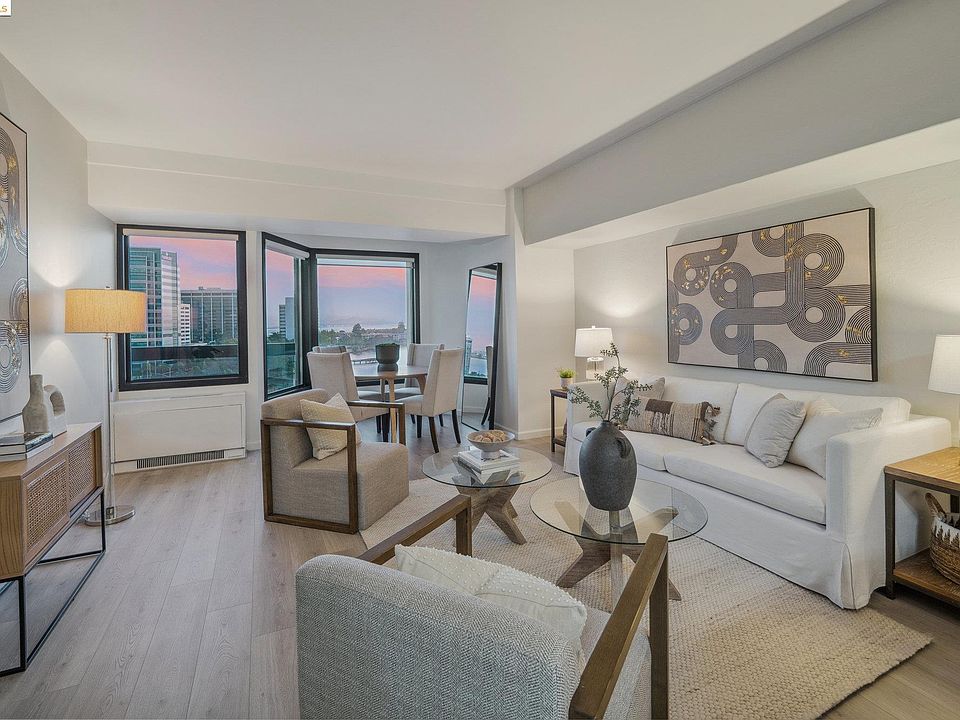 Pristine and tastefully updated, this rare condo features sleek cabinetry throughout, modern engineered floors, Jenn-Air oven, brand new stove, newer refrigerator, air conditioning, marble-like bathroom counters, and a much-coveted parking spot close to the main entrance! Bask in breathtaking panoramic vistas of the Golden Gate and Bay Bridges, the San Francisco skyline, and Mt. Tamalpais. The 10th floor at Pacific Park Plaza offers the perfect view height: a far horizon yet maintaining a human perspective. 10th floor is also the ONLY floor that has fresh white paint in the corridors! Enjoy the luxury of resort-style amenities, including a heated pool, jacuzzi, a 24/7 gym, and tennis courts, all within the secure confines of your round-the-clock secure building. Close proximity to Bay Street shopping, dining, and entertainment. AC transit to SF, easy freeway access, and a free local Emeryville go-around shuttle. This home is your gateway to the best of city living!