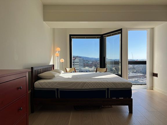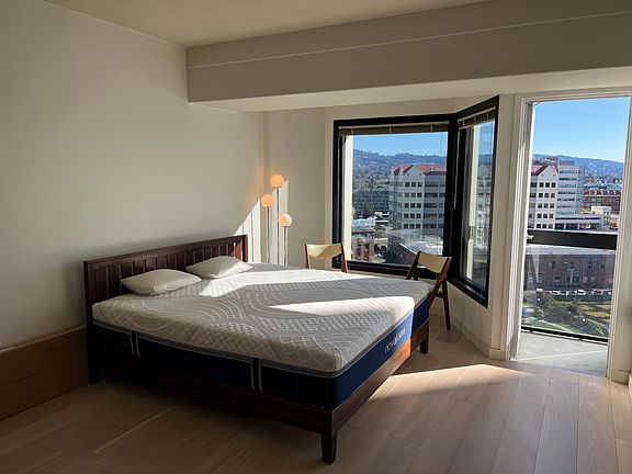 Availability March 19th 2023 to April 29th 2023. One bedroom condo on 12th floor with views of Oakland downtown, UC Berkeley and East bay Hills. Has a small balcony and an assigned garage parking spot. Furnished with a couch, 2 lounge chairs, 6 dining chairs, full kitchen and a king bed and mattress. 24/7 community pool and jacuzzi. Community laundry room on the same floor. 10 minutes walk (or free Emery-go-round shuttle) to Trader joes and Bay Street Mall. New hardwood flooring, New dishwasher, new microwave oven, new bed and mattress. Availability March 19th 2023 to April 29th 2023. Owner pays for water, trash, internet. Tenant pays for gas and electricity. No TV plan.