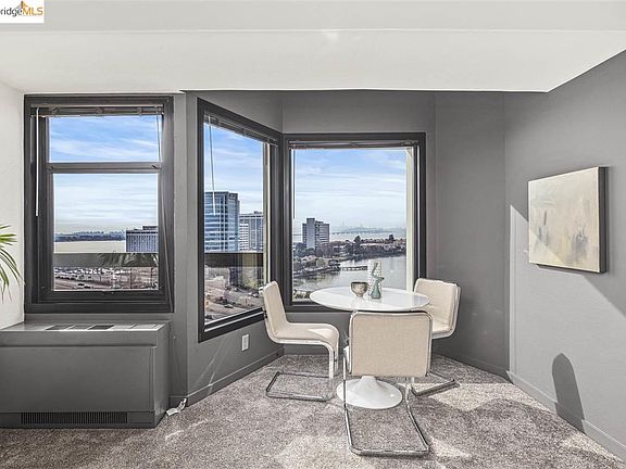 NurtureSource updated the property including the Kitchen and Bathroom. The unit faces West with panoramic views of the Port of Oakland, Bay Bridge, San Francisco, and the Golden Gate Bridge. You can't get much closer to San Francisco without going over the Bay Bridge. It is Centrally Located with easy access to freeways, Amtrak, BART shuttle. Nearby are restaurants, cafes, movies and the wonderful Public Market. The kitchen has new countertops, new sink, faucet and new induction range/oven: the bathroom has new countertops and fixtures. A sliding door separates the toilet & bathing areas. There is a hallway between the bathroom and bedroom that has 2 Large Closets on either side with mirrored sliding doors. It too has a nice sized alcove that's a possible space for a home office. HOA Fee covers : 24 hour on-site security, gym, heated pool, jacuzzi, sauna, tennis courts, water, garbage, and insurance.