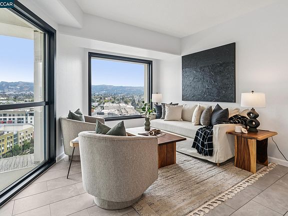 Experience luxury living at Pacific Park Plaza in Emeryville. This beautifully designed 1 bed, 1 bath condo features updated kitchen and bathroom, sweeping eastern facing views, and a bright open floor plan. Enjoy convenient amenities such as on-site gym, pool, tennis court, sauna, community room, dedicated parking, EV charging stations, guest parking and 24-hr security desk. Close to Emeryville Public Market, Bay Street Shopping, water front trails, cafes, parks, and transit including express bus to SF. Don’t miss it!