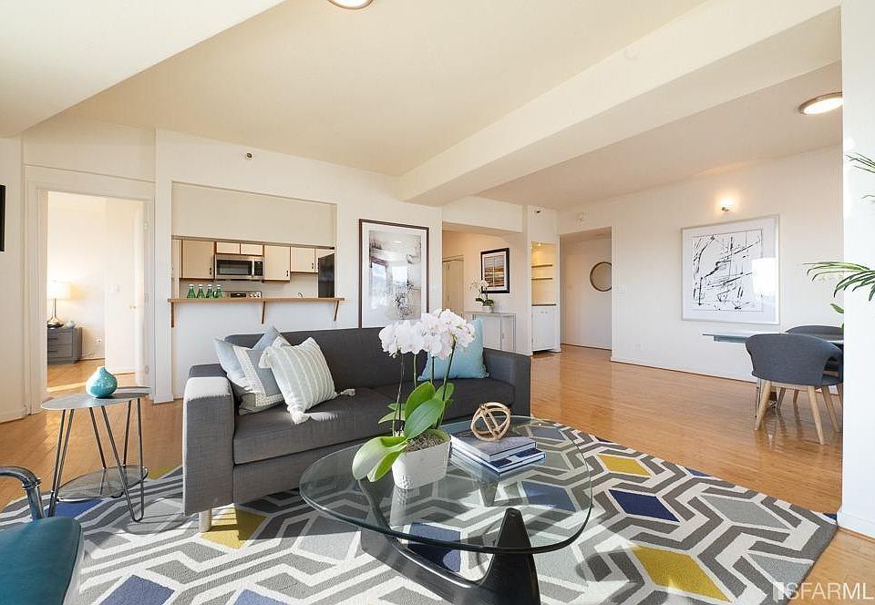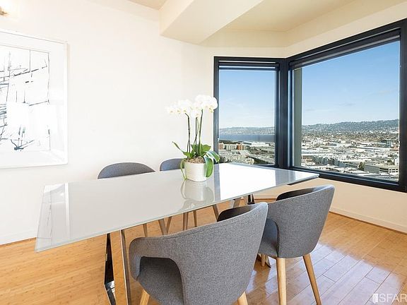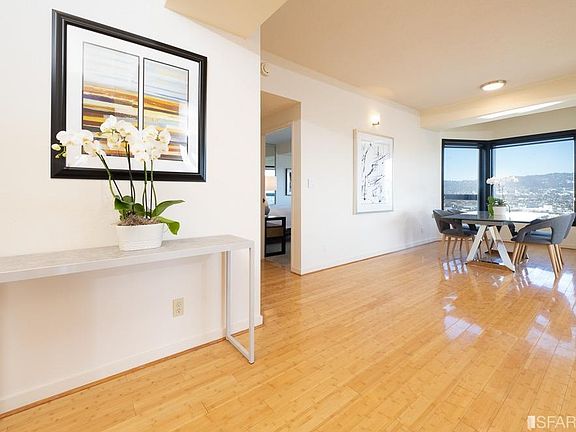 Sunlight illuminates every space of this impeccably designed, bright and open flowing floorplan through an abundance of oversized windows, bringing in all day natural sunlight and spectacular morning sunrises. From any room of this 2 bed/1.5 bath corner residence, you can gaze upon the exquisite surrounding sights of the Oakland/Berkeley Hills, Christie Avenue Park, and Downtown Oakland skyline. The main living areas offer real bamboo hardwood flooring throughout, new appliances and light fixtures, and custom fitting shades. An oversized primary bedroom features a reading/office nook, an expansive full-wall of closet space, and an en-suite bath. The secondary bedroom is located on the opposite side, for utmost privacy. Spacious dining area and open living room are perfect for entertaining. Two private balconies offer a seamless indoor/outdoor living experience. An Award-winning, full-service luxury highrise, Pacific Park Plaza offers unparalleled amenities including 24/7 Doorman/Security, heated pool, tennis court, full gym with locker rooms & saunas, EV charging, resident lounge & more. A prime location offers access to SF/Oakland/Berkeley buses and free shuttle to MacArthur BART. Blocks to the Public Market, Bay Street Shopping Plaza, AMC Theater, Powell Street Plaza, and more!