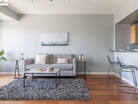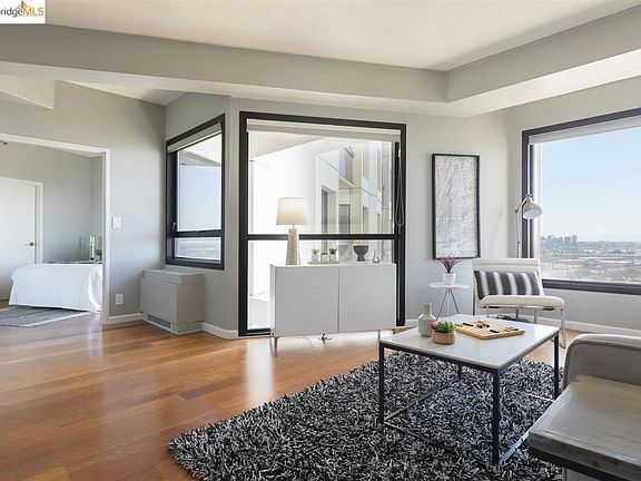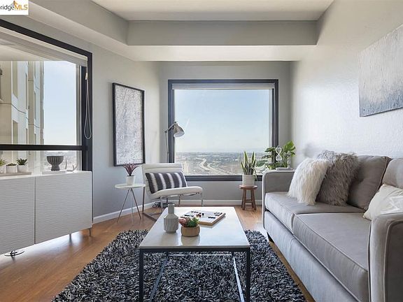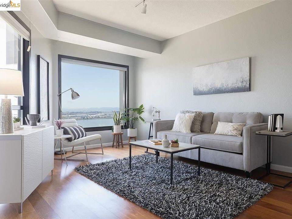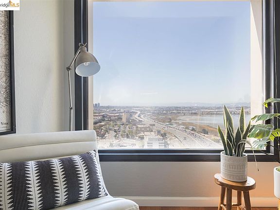 This upgraded 1 bedroom, 1 bath unit has unobstructed views of the Bay, air conditioning, and Pergo flooring throughout. The master bedroom is outfitted with mirrored closet doors and modular Elfa shelving for more storage options. The connecting bathroom has been completely updated with a chic, modern look, with a spacious walk-in shower, quartz vanity counter and tile flooring. The kitchen has also been updated, boasting maple shaker cabinets, quartz countertops and all new stainless steel appliances. Tucked into the entry hallway directly opposite is a cozy home office, perfect for working remotely. The laundry room is conveniently steps away on the same floor. This highly-sought luxurious high-rise offers 24-hour security, member lounge, pool, sauna, spa, fitness center, and 2 tennis courts. Emeryville Public Market, Powell Street Shopping Center and Bay Street shopping and cinema, Emery-Go-Round free shuttle, BART, Amtrak, and freeways nearby, only 20 mins to SF.