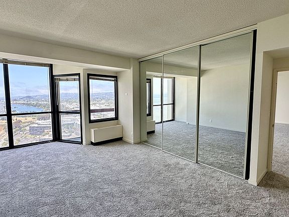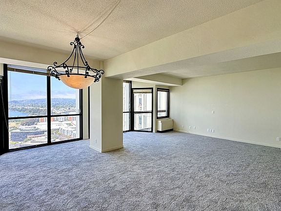 Seize the rare opportunity to live in a penthouse at Pacific Park Plaza, where you can enjoy breathtaking views that stretch from the water all the way to the Berkeley and El Cerrito hills. This unit features oversized floor-to-ceiling windows and an open floor plan, offering stunning vistas from every room. The living room and bedroom are carpeted, while the kitchen has been tastefully renovated with sleek white cabinetry, quartz countertops, and stainless steel appliances. There are two spacious bathroomsone with a stall shower and separate oversized tub, and the other with a shower over tub. Pacific Park Plaza; the only 30-story high-rise building in Emeryville. Amenities include a 24-hour security desk, fitness center, sauna, pool, tennis courts, and a bayside lounge. Enjoy the convenience of 2 secure covered parking spaces and an overflow lot for an additional car or guests. Laundry facilities are located on each floor of the building. Public Transportation and entertainment abound, with a free shuttle to BART, Transbay Bus, AC Transit Bus, and all freeway on ramps right out your door. Walk to The Emeryville Public Market, Trader Joe's, Bay Street Mall, multiple restaurants, shopping and coffee shops! HOA Move-in Fee: $100 Utilities included: Water, garbage Utilities not included: PG&E Pets: No pets, sorry Laundry : 24/7 coin-operated machines on each floor (3 washers & 2 dryers for 21 units) Lease term: 1-year Parking: 1 covered parking spaces in gated garage Appliances: Refrigerator, Stove, Dishwasher, Window Coverings, microwave Flooring: Carpet, sheet vinyl Application fee: $50 Heating : Wall unit Cooling: Wall unit Amenities included: Gym, Pool, Hot Tub, Tennis Courts, Sauna, Secure Package Room Yolanda Gorman Realtor DRE#02198315 All East Bay Properties DRE#01516255 *We are an Equal Opportunity Housing Provider and follow all fair housing laws.