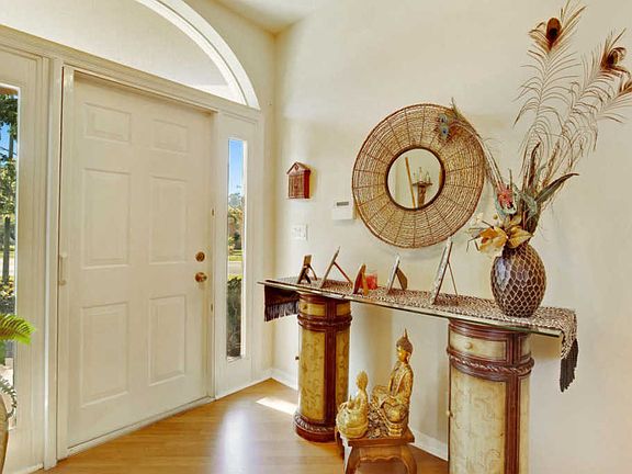Great house on corner lot in cul de sac. Laminate in living areas. Plantation shutters on most windows. Private screened patio and courtyard off kitchen area. Great golf course community with no mandatory membership. Close to shopping and schools.