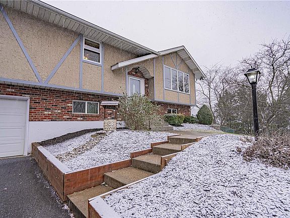Don't miss the opportunity to own this charming and upgraded property, offering spectacular views from both the front and rear. The home has been expanded to include a Primary Bedroom suite featuring a spacious walk-in closet and a private bath with a relaxing whirlpool tub and a Corian vanity top. With 3 bedrooms and 2.5 bathrooms, this home provides ample convenience for everyday living. The kitchen boasts a smooth-top range, built-in microwave, stainless steel breakfast bar, recessed lighting, and ceramic flooring. The family room is a cozy retreat with its stone wall Heatilator fireplace, ceramic flooring, and fireplace insert. The upper and lower levels open to decks where you can enjoy the breathtaking countryside views. Car enthusiasts or those needing additional storage will appreciate the 3-car detached garage equipped with electric, automatic openers on all doors, and a convenient 1/2 Bath. An additional 2-car built-in garage is also included, along with attic storage accessed via pull-down stairs. This home combines comfort, style, and functionality, making it the perfect place to enjoy both relaxing moments and lively gatherings