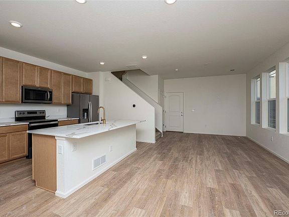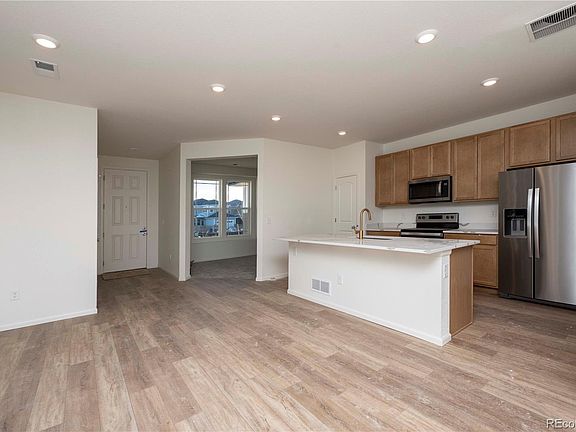 This perfect floorplan has it all. The first floor has an office providing privacy for those who work from home or need a den/workout space adding that adds dimension to your living space The kitchen has an oversized island with beautifully upgraded quartz countertops. On the second floor you will have a loft for your flex space, 3 beds and a laundry room for that easy access. This private side yard home includes a 5ft fence included and we are a low maintenance community. Please enjoy the 7 parks, one of the largest in all of Colorado boasting 22 acres includes BBQ, basketball court, Tree house, community gardens and corn hole! This home is sure to please. Come see us today! The Listing Team represents builder/seller as a Transaction Broker.