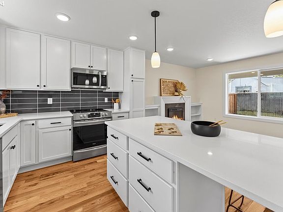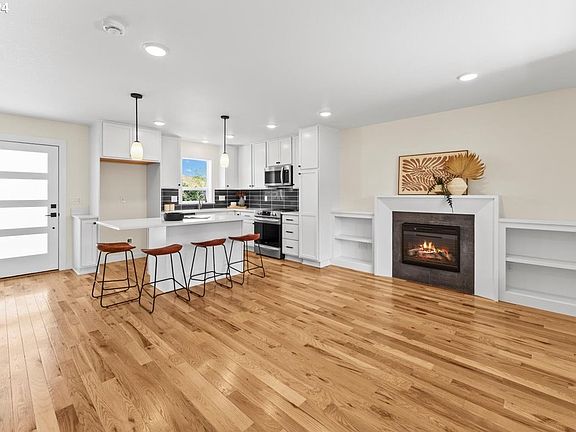 Stunning 2 bedroom NEW CONSTRUCTION home that embodies modern luxury. As you step inside, you'll immediately notice the OPEN CONCEPT design that seamlessly blends the kitchen and living room, creating a perfect space for entertaining or relaxing. The kitchen is a chef's dream, featuring QUARTZ countertops, stainless steel appliances, and plenty of cabinet space for storage. The HARDWOOD floors throughout the home add warmth and elegance, while the FIREPLACE in the living room provides a cozy focal point. The bedrooms are spacious and bright, with large windows allowing plenty of natural light to fill the rooms. The bathrooms are beautifully appointed, with MODERN fixtures and finishes as well as conveniently placed upper level laundry. Air Conditioning throughout the home is also included. Step outside onto the COVERED BACK PATIO w/ tongue and groove ceiling, where you'll find the perfect spot to enjoy your morning coffee or host a summer barbecue. Located in a desirable neighborhood close to WOODSTOCK amenities , schools, parks, and shopping. Don't miss out on the opportunity to own this EXQUISITE new construction home! FHA financing available. [Home Energy Score = 10. HES Report at https://rpt.greenbuildingregistry.com/hes/OR10226719]