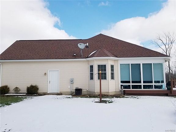 Stunning! describes this 3 bed, 2 full bath Ranch home in the much desired Starpoint School District. This home features New Glass Front Door, Entry to Large Foyer with a Grand opening to Cathedral Ceiling Great Room, Gorgeous Hardwood Floors, Gas Fireplace, OPEN FLOOR PLAN!! 9 Ft Ceilngs, Formal Dining Room. Kitchen with Tall Cabinets & Granite countertops, Backsplash, recessed lighting, stainless steel appliances included, Bay Window and eating area, Custom window treatments throughout. Master Suite with Tray ceiling, California Closet (2018), on suite with dble sinks. 3rd Bedrm could also be used as a den/study or office. 3 season sunroom with custom window treatments overlooks rear patio and lovely yard. Generator and back up sump pump, water softener in full basement and 2.5 car gar.
