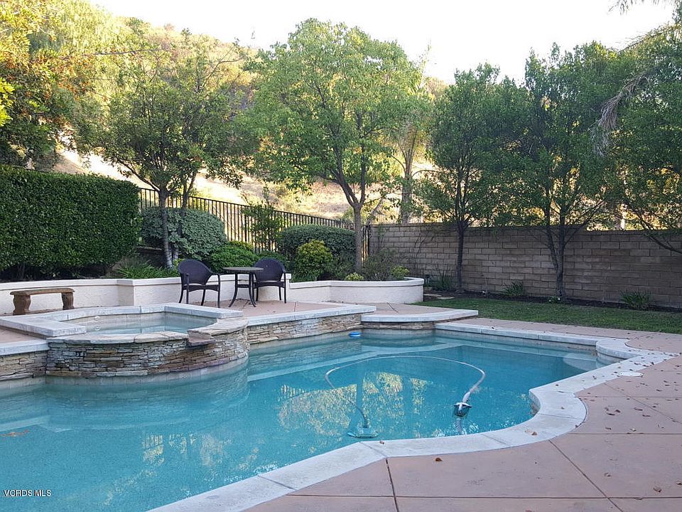 Pristine Oak Park Regency Hills Single Family Pool Home. Private yard with mountain view, a pebble tech pool/spa, built in BBQ and a large covered patio. Wonderful floor plan with gorgeous wood floors, high ceilings and crown molding. and french doors from the formal dining to the entertainers backyard. Updated kitchen features granite counters, island, stainless steel appliances, walk in pantry, informal dining area and is open to family room with fireplace. Downstairs bedroom with private bath! Upstairs has large bedroom suite with bath, and walk-in closet; 3 additional bedrooms and an office/den. This home has it all, 3 car garage with storage and extra refrigerator, laundry room with washer/dryer and sink, dual zone central heat and A/C. Desirable Oak Park Schools, convenient to hiking trails and community park with tennis courts. No Smoking, Submit on small dog with additional deposit