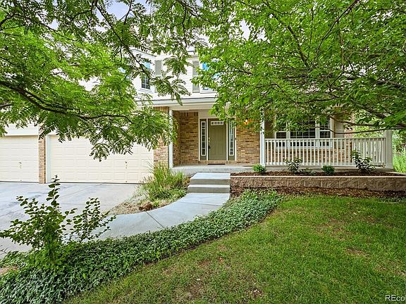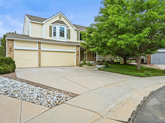 Beautiful Family Home in Homestead at The Farm! Nestled in a peaceful cul-de-sac, this spacious home sits on an oversized lot just a short walk from the community pool, parks, and tennis courts! The sunny, west-facing main level features formal living and dining rooms—perfect for entertaining—as well as a main floor study ideal for a home office or quiet workspace. The eat-in kitchen offers abundant maple cabinetry, a pantry for extra storage, and a center island with seating. Step outside to a HUGE patio—perfect for summer BBQs—overlooking the expansive, fenced-in backyard with water feature. Cozy up in the inviting family room with a gas fireplace, and enjoy the convenience of a main-level powder bath. Upstairs, the generous primary suite features a walk-in closet and private 5-piece bath. Two additional bedrooms share a Jack and Jill bath, and the laundry room is located upstairs for added convenience. The full basement provides tons of storage or can be finished to suit your needs. Additional highlights include new interior paint, refinished hardwood floors, a new 50-gallon water heater & furnace, newer roof (2023), and a tranquil backyard water feature. Walk to top-rated Fox Hollow Elementary and enjoy easy access to DTC, Southlands Mall, shopping, dining, and DIA. Don’t miss this wonderful opportunity to call The Farm home!