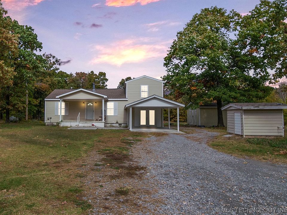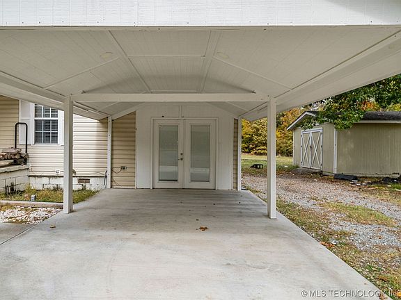 Back on the market at no fault of the seller. This 5 acre mini farm just outside the city limits of Locust Grove now available! You'll love the fact that this home is located only 1 mile from Hwy 412, so access to Tulsa, Pryor, MidAmerica Industrial Park, NW Arkansas, etc is extremely easy. You're surrounded by timber and wildlife but all of the conveniences that we love and appreciate are only a couple of minutes away. This home features 4 bedrooms (2 downstairs and 2 upstairs), 1568sqft, the former garage was converted to a family room/den, and there's even an area for an office or kids play room. In recent years the seller has installed a new roof, new vinyl windows, upgraded the electrical and installed pex plumbing. This place is loaded with charm and possibilities. Upstairs has a large hall closet area that could be converted to an upstairs bathroom. There are original hard wood floors in the home that could be brought back to life. Outside you will find a very nice covered parking area with LED recessed lighting, a storage shed, the entire 5 acre property is fenced with barbed wire and wildlife abounds out here. Come check it out!