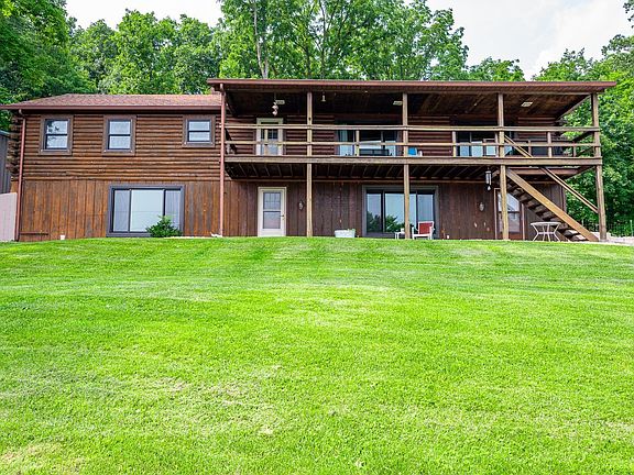 Welcome to your dream retreat! This rustic log-sided home perched high above the serene shores of Blue Lake offers the perfect blend of tranquility and adventure. Situated on a triple lot with nearly half an acre of picturesque landscape, this property is a haven for outdoor enthusiasts with its ski lake access, fishing, and boating activities. The two-car garage and 36x36, 14 ft high outbuilding provide ample space for all your workshop and storage needs. Enjoy the breathtaking views from the bi-level covered porches, and step inside to discover an open concept layout adorned with new vinyl flooring. The heart of the home boasts a stylish kitchen with a convenient breakfast bar and updated appliances, flowing into the inviting living room and dining area. Rest and rejuvenate in the main bedroom ensuite featuring a walk-in closet, while the oversized walk-out basement awaits downstairs, complete with a wet bar area, cozy corner fireplace, full bath, and laundry zone. The enchanting backyard, patio, and fire pit space set the stage for unforgettable gatherings. Enjoy the breathtaking views from this hilltop home overlooking the lake with direct water access! Be sure to check out the 3D tour!