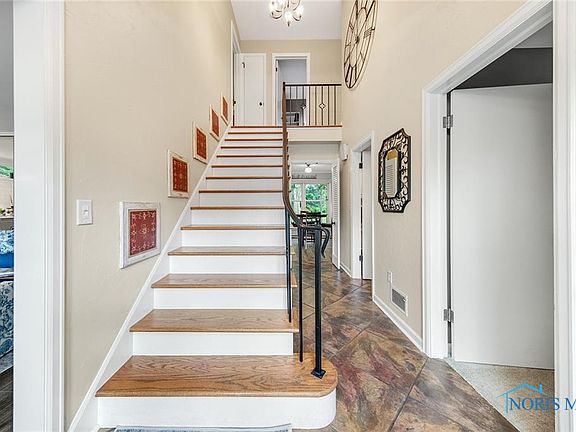 This fabulous Sylvania home has it all Newer dream kitchen has large island, quartz counters, gas cooktop & double-oven, and opens into dining area & Fam. Room. Private, cul-de-sac lot deck & stone patio. Vaulted entry Travertine tile flor. Luxury VP floors. Full bath/bedrm on main. 3 beds hardwood flrs, a "bonus" den/office, & full bath up. Huge basement has finished rec rm., workshop, & tons of storage. Attached 2-car garage move storage. YES