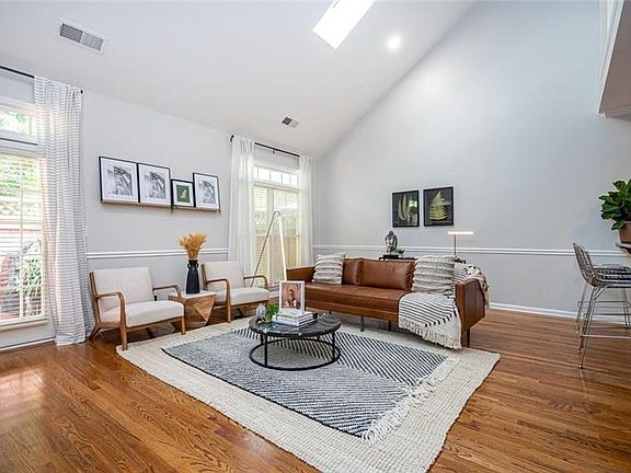 Fun Open Floorplan in this unique Townhome! The John Wieland resale boasts hardwood floors on the main with soaring vaulted ceiling in the recently renovated fireside Great Room which opens up to the spacious Dining Room area. The Kitchen features stained cabinetry, stainless steel appliances, and granite countertops. The Homeowner's Suite with Sitting Area is on the Terrace Level with access to a cozy private rear patio area. It also features the spa-like Homeowner's Bathroom complete with double vanities, jetted tub, separate shower, water closet, and walk-in closet! The other Bedrooms are on the third level along with a full Guest's Bathroom along with a nice Loft Area. This gated community feels like a resort with a spacious tri-level clubhouse complete with work-out facility, theater area, billiards, swim (2 pools) tennis (ALTA), walking trails, dog park, additional guest parking and sidewalks throughout!