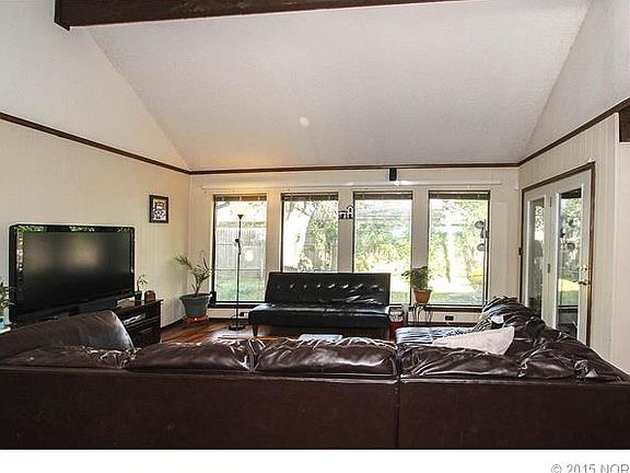 Large open plan with new living wood flooring, vaulted ceilings, spacious kitchen, eat in dining, 2 large beds down, large master w/private bath and balcony, huge 4th bedroom could be game room and enclosed patio/sunroom. Matured treed lot.