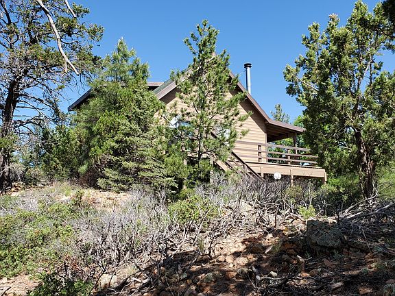- Exterior Features: Deck - Covered, Drip System, Gutters/Down Spouts, In the Trees, Panoramic View, Street Paved, Tall Pines On Lot, Satellite Dish