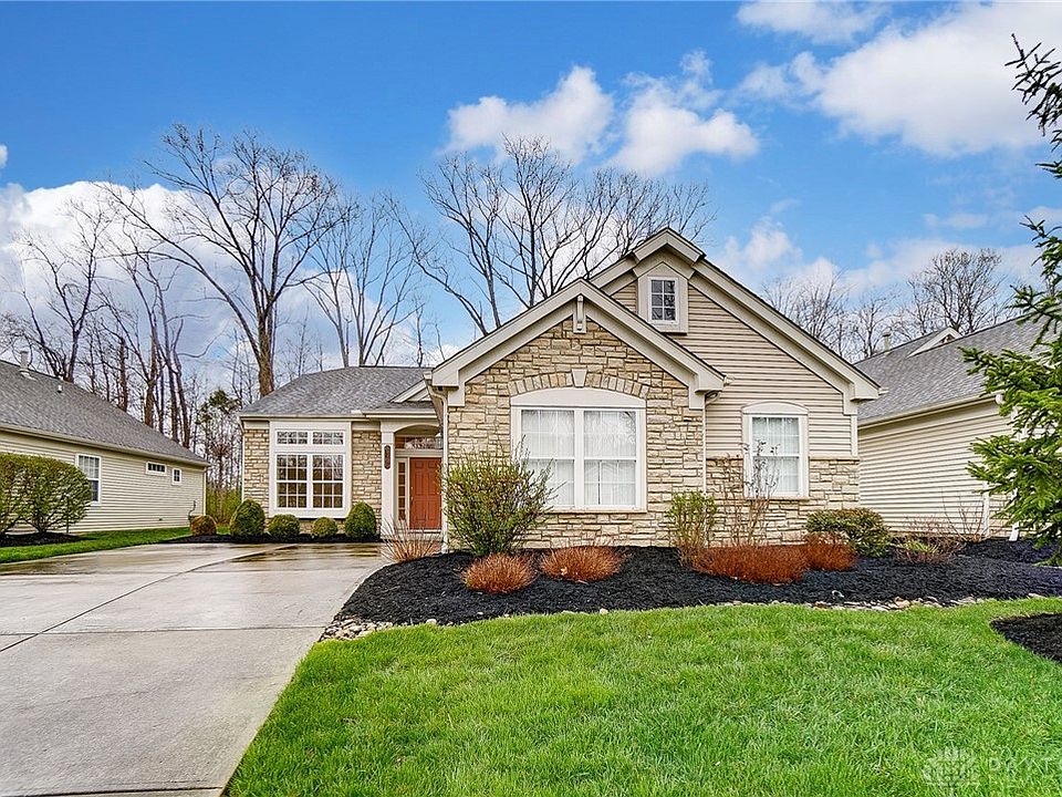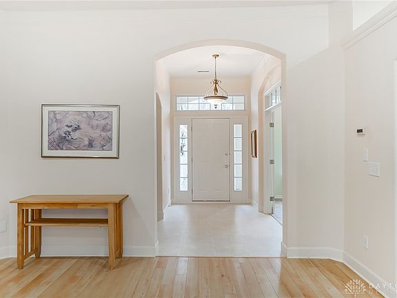 Bright and cheerful patio home with 10' ceilings, transom windows throughout, arched doorways, and decorative ledges. Large 4 seasons room with wooded views that back to a horse trail. Kitchen with pantry and lots of counter space. Primary bedroom w/2 walk-in closets, oversized shower, and double vanity. Primary has slider door to 4 seasons room. 3rd bedroom being used as an office (glass doors). HOA maintains front lawn, flower beds, mulch, and snow removal. Pool community. Being sold as-is.