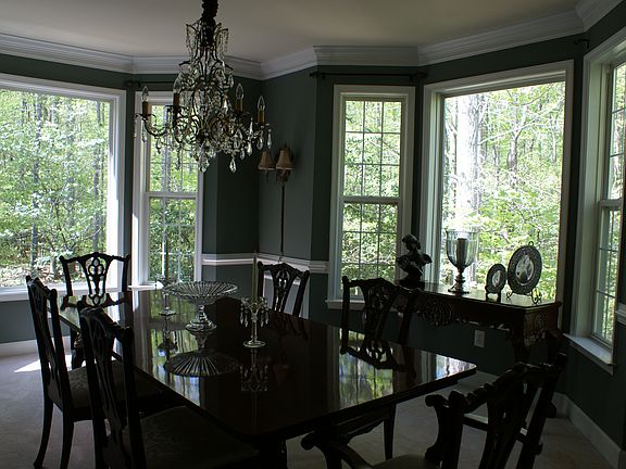 Large upgraded home in Hunter's Ridge featuring 5 bedrooms/4 1/2 baths, three car garage. Over 5400 sq. ft. on three finished levels. Great neighborhood with excellent schools. Beautiful, private 1 acre lot backing to woods and surrounded by trees. The back yard is fully fenced and has a large wood deck and stone lined concrete patio. Hardwood floors on the main level and brand new carpeting on upper (bedroom) level. Formal living and dining rooms, family room with wood burning fireplace, home office, light filled sun room. Kitchen has maple cabinetry, newer appliances, large island with 5 burner cooktop, double oven, and granite countertops. All baths are newly renovated with upgraded cabinets, custom tile and granite. Large master suite with huge walk-in closet. The master bath has a large shower with frameless shower doors, large Jacuzzi tub, dark cherry cabinets and exotic granite vanity top. Jack 'n Jill bedrooms, princess suite with private bath. Laundry on upper level. Walk-out basement with a bedroom, full bath, exercise room, and custom mahogany wet bar. Pets welcome as long as they are house trained.