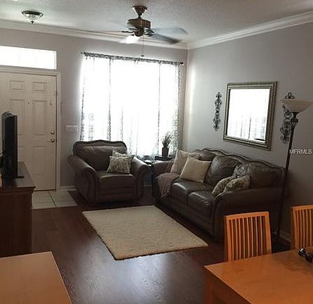 READY TO MOVE IN!!!!!!This Beautiful end unit townhouse is a must see! Very well maintained and clean! Location, location. location...It will be zoned for the new Windermere High School. Screened back patio with tile floor, crown molding in living room, dining room and kitchen. All appliances stay, crystal chandelier in dining room stays. Free standing built in kitchen cabinet unit. Newly painted. Tile framed mirrors in master bathroom. Corian countertops, oak wood on the stairs, decorative shelving units stay.