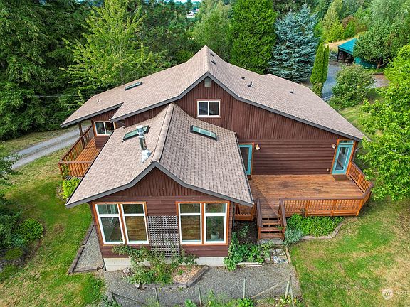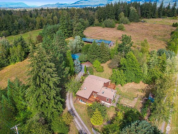 7.7-Acre Hobby Farm features a 2300 SF main house & a 728 SF detached ADU. Main house has an oversized kitchen / dining area & vaulted ceiling Great Room w/wrap-around deck. Primary BR w/ensuite bath, large guest BR & 3/4 bath on the main; 3rd BR upstairs. Walkout unfinished basement provides excellent storage. ADU has kitchen & living rm, 1 BR & a 3/4 bath both w/radiant floor heat. Rent it short or long term. Both homes have brand new roofs. Older barn w/stables welcomes horses or your animals of choice that can graze in the giant, gently rolling hay field. Charming & serene lawns w/range of established fruit/soft/hardwood trees make this setting positively dreamy. 10 short miles from I-5 for a full escape to slow country living.