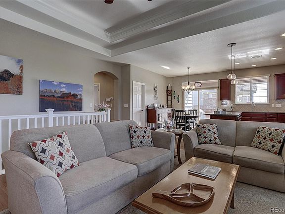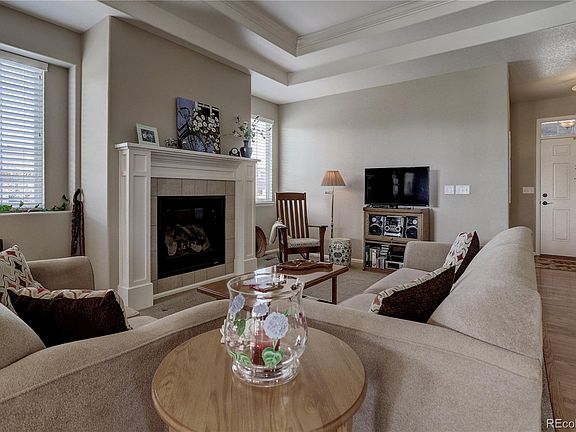 Beautiful upgraded ranch with a full basement. This home has lots of personal touches. Pride of Ownership shows throughout the home. The Great Room has a coffer ceiling and a gas fireplace with a lovely mantel. Enjoy cooking in the gourmet kitchen with upgraded cherry cabinets, quartz counter tops, stainless steel appliances and a large pantry. The pendant lights enhance the kitchen island. There are hardwood floors in the kitchen, dining area and walkway. The wonderful master bedroom includes two walk-in closets and a retreat that could be used as a study. The five-piece bath features a jetted tub. There is a family room in the partially finished basement. Plenty of room to add a bath and two bedrooms. Relax on the covered patio looking onto the professionally landscaped yard. This corner lot is a plus. This Home is Ready to Move In and Enjoy! Ideal location near the Gaylord Rockies Resort and DIA.