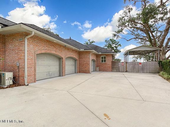 WOW! Spectacular custom riverfront home w/180' frontage on St Johns River. Quality built w/brick over concrete. Spacious floorplan & custom designs thru-out the home. Over 3000 sg ft of travertine decking, water fall, hot tub, pool, covered RV/Boat parking. Newer dock w/pilings 30' deep, covered 20,000 lb boat lift & 2 jet ski lifts w/8ft water depth. Plus a second docking station w/deep water access & 50 amp meter. Property is protected by a double bulkhead that was raised. Minimal daily tide swings less than 12''. 400 amp automatic generator. Walk inside & be impressed. Beautiful foyer, coffered hardwood maple inlayed ceiling, travertine floors, custom oversized granite island & SS Jenn Air appliances... & incredible views! Please see attached feature sheet for a list of upgrades.