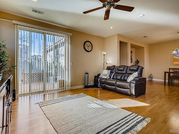 Beautiful, updated east-facing end unit with a mountain view from the front porch within walking distance to shopping and dinning that belongs to the popular Cherry Creek School district and Cherry Creek High School!! This gorgeous home features an open floor plan with high ceilings, spacious kitchen with 42" wood cabinets, a breakfast bar, pantry and formal dining area, laminate wood flooring, a large great room with a sliding door to a cozy, fully fenced yard with a deck. The bedrooms and laundry area are conveniently located upstairs and the master suite has a Juliet balcony overlooking the greenbelt. There is lots of storage space in the unit and an attached 2-car garage. Schedule a tour before this gem is gone!