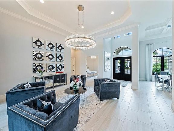 Immediate Golf Membership Available! Jump the waitlist with newest built resale in Quail West. The open floor plan offers several areas to entertain whether it be the formal living room, spacious great room or covered lanai. With South facing views over the 8th hole with the Preserve course you'll enjoy basking in the Florida sun while maintaining coveted privacy as the cart path winds on the opposing side of the Par 4 fairway. Multiple seating areas adorn the expansive lanai which is fitted with an outdoor kitchen, fire pit table, panoramic screens and hurricane shutters. The primary suite offers walk-in his & her closets, a soaking tub, open shower and French doors which provide direct access to the pool. High end finishes amongst a minimalist environment offer the relaxing move-in ready opportunity for the seasonal or annual buyer. Keep your own golf cart in one of the 3 garage bays, so you can quickly access 8 tennis and 4 pickleball courts, 3 dining options, 2 story fitness center and 36 holes of Arthur Hills designed golf!