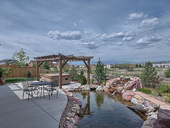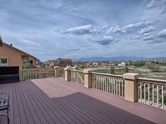 WOW...This home is a must see, it shows like a model with upgrades galore! Main level Master suite with views/walkout to deck and fire place~Main level office~gourmet kitchen~Huge island with gas cook top~Slab granite counter tops~Great room w/ wood lined ceilings~Junior Master suite in basement with fireplace and gorgeous Bath~huge composite deck~Walk out basement with wet bar~stucco exterior~pond~hot tub~beautiful views of Pikes Peak~three car garage~gorgeous landscape~backs to open space.